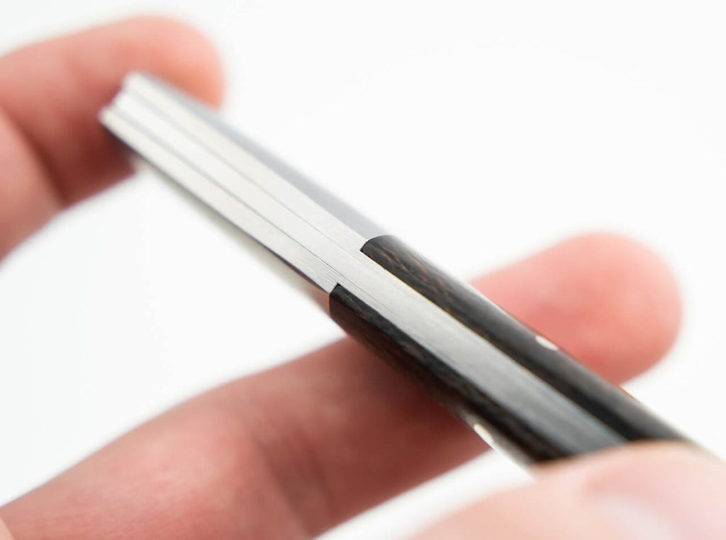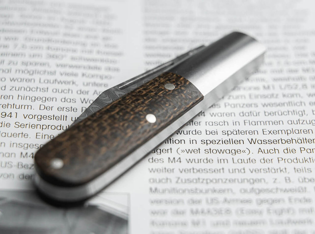 Standardmäßig werden die Messer bei uns auf der Rückseite von Hand in Schreibschrift graviert. Außerdem funktioniert das Gravieren am besten bei unbeschichteten Klingen, da die unterschiedlichen Beschichtungen nicht immer eine Gravur zulassen oder ein ungleichmäßiges Ergebnis erzeugen. Für Sonderanfragen für Gravuren auf der Vorderseite des Messers (nur bei großen Messern), für beschichtete Klingen oder sonstigen Fragen nutze bitte das Kontaktformular, schreib uns eine E-Mail oder ruf uns gerne an.