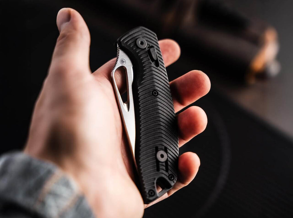 The beauty of duty – pflichtbewusst, zuverlässig und dabei immer leichtfüßig im Alltag unterwegs: Das Böker EDK (Every Day Duty Knife) ist ein Macher; mit anspruchsvollem Naturell und einem klaren Bekenntnis zur Hingabe. Schneiden als wahres Vergnügen ist weniger ein Versprechen als vielmehr spürbare Realität. Unterstrichen wird die Diensttauglichkeit des Böker EDK durch seine satinierte und kugelgelagerte Droppoint-Klinge aus pulvermetallurgischem CPM MagnaCut (61-62 HRC), die bei den täglichen Schneidarbeiten vom Öffnen einer Verpackung bis zum Durchtrennen von Seilen auf ganzer Linie überzeugt. Der Klingenstahl steht für höchste Stabilität bei gleichzeitig herausragenden Schneideigenschaften: schnitthaltig, hart, korrosionsbeständig sowie zäh – kompromisslose Performance garantiert! Geöffnet wird das Taschenmesser über das tränenförmigen Daumenloch; der Klingenrücken ist zusätzlich mit rutschfesten Jimpings an der Daumenauflage für eine sichere Handhabung ausgestattet. Der intuitive Schieberegler des Crossbar-Lock arretiert die Klinge sicher und ist formschön in den ergonomischen Griff aus glasfaserverstärktem Nylon (GFN) eingebettet, welcher hohe Festigkeit mit geringem Gewicht vereint. Für das Plus an Haptik sorgt die fingerabdruckartige Textur der Griffschalen, die im Einklang mit der Formensprache von Crossbar Lock, Klingenachsschraube, Fangriemenöse und dem umsetzbaren Tip-Up Clip steht. Die Auslieferung des Böker EDK erfolgt in einem hochwertigen Filz-Etui. Handgefertigt in der Böker Manufaktur Solingen. Warnhinweise und Sicherheitsinformationen:Schnittverletzungen: Die häufigste Gefahr bei der Verwendung von Messern ist das Risiko von Schnittverletzungen. Scharfe Klingen können schnell durch Haut und Gewebe dringen.Abrutschen des Messers: Ein unsachgemäßes oder zu starkes Drücken kann dazu führen, dass das Messer abrutscht und unkontrollierte Bewegungen entstehen, die Verletzungen verursachen können.Verletzungen durch Stürze: Messer sollten niemals ungesichert oder in der Nähe von Tischkanten abgelegt werden, um zu verhindern, dass sie herunterfallen und jemanden verletzen.Stumpfe Messer: Stumpfe Messer stellen ein größeres Verletzungsrisiko dar, da sie mehr Kraft erfordern und leichter abrutschen können. Messer sollten daher regelmäßig sachgemäß nachgeschärft werden.Nicht bestimmungsgemäße Nutzung: Das Verwenden eines Messers für Aufgaben, für die es nicht vorgesehen ist (z.B. als Hebelwerkzeug), kann nicht nur die Klinge beschädigen, sondern auch zu Unfällen führen.