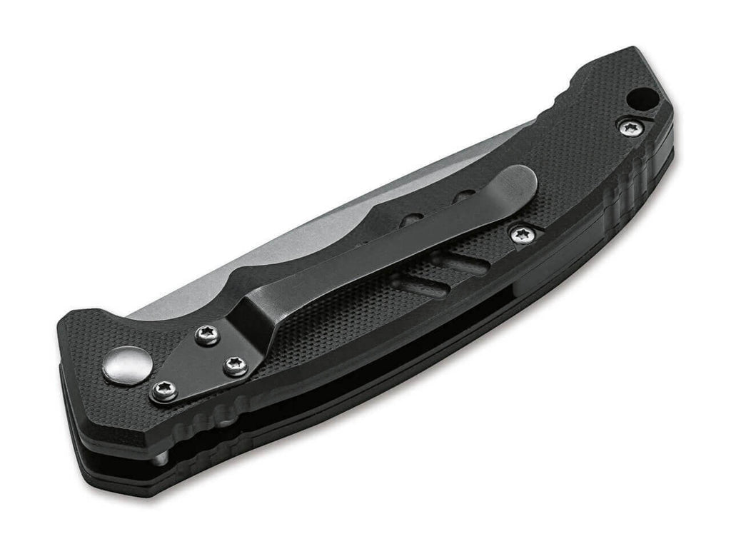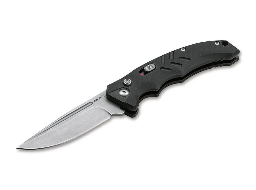 Hinweis: Seit dem 31.10.2024 gilt in Deutschland ein generelles Umgangs- und Besitzverbot von Springmessern aller Art. Es handelt sich ab sofort um verbotene Gegenstände, deren Besitz strafbar ist. Der Besitz von bestimmten Springmessern ist gem. Anlage 2 zum Waffengesetz Abschnitt 1 Nummer 1.4.1 nur noch Personen erlaubt, bei denen ein berechtigtes Interesse besteht, das eine einhändige Nutzung erforderlich macht (etwa aufgrund eines fehlenden Arms oder einer fehlenden bzw. dysfunktionalen Hand), oder der Umgang im Zusammenhang mit der Berufsausübung (z.B. Jagd, Handwerk) oder dem Sport (z.B. Segeln oder Bergsteigen) erfolgt. Gleiches gilt für gewerbliche Händler oder Hersteller solcher Messer. Die Abgabe erfolgt daher nur noch an berechtigte Personen. Bitte prüfen Sie vor der Bestellung, ob ein solches berechtigtes Interesse bei Ihnen vorliegt.Das als taktisches Automatikmesser konzipierte Böker Plus Intention überzeugt nicht nur im Einsatz, sondern bewältigt auch alle anfallenden Schneidaufgaben des Alltags mühelos. Das Betätigen des Druckknopfes gibt die Stonewash-Klinge aus D2 frei, durch die Spannung der dahinterliegenden Feder klappt sie dann selbstständig auf. Eine sauber rastende Schiebesicherung gegen versehentliches Auslösen sichert das Messer zusätzlich. Der ergonomisch geformte Griff wird aus strukturiertem G10 gefertigt, Riffelungen im Bereich der Daumenauflage und die ausgeprägte Fingermulde verbessern die Handlage nochmals. Mit Fangriemenöse und Clip (Tip-down). Warnhinweise und Sicherheitsinformationen:Schnittverletzungen: Die häufigste Gefahr bei der Verwendung von Messern ist das Risiko von Schnittverletzungen. Scharfe Klingen können schnell durch Haut und Gewebe dringen.Abrutschen des Messers: Ein unsachgemäßes oder zu starkes Drücken kann dazu führen, dass das Messer abrutscht und unkontrollierte Bewegungen entstehen, die Verletzungen verursachen können.Verletzungen durch Stürze: Messer sollten niemals ungesichert oder in der Nähe von Tischkanten abgelegt werden, um zu verhindern, dass sie herunterfallen und jemanden verletzen.Stumpfe Messer: Stumpfe Messer stellen ein größeres Verletzungsrisiko dar, da sie mehr Kraft erfordern und leichter abrutschen können. Messer sollten daher regelmäßig sachgemäß nachgeschärft werden.Nicht bestimmungsgemäße Nutzung: Das Verwenden eines Messers für Aufgaben, für die es nicht vorgesehen ist (z.B. als Hebelwerkzeug), kann nicht nur die Klinge beschädigen, sondern auch zu Unfällen führen.