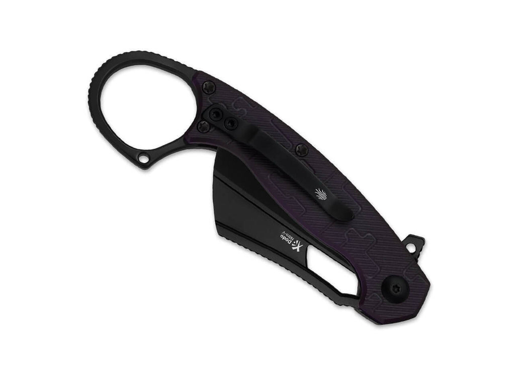 Das Dodo ist ein durchdachtes Design von Giedymin im Karambit-Stil, das sich durch seine kompakte Bauweise und hohe Funktionalität auszeichnet. Die Klinge aus Nitro-V-Stahl bietet eine exzellente Schneideleistung und wurde mit einem PVD-Finish veredelt. Der flache Schliff sorgt für präzise Schnitte und eine hohe Schnitthaltigkeit. Für die Handhabung stehen zwei Öffnungsmechanismen zur Verfügung: ein Daumenloch und ein Flipper, die eine schnelle und einfache Bedienung ermöglichen. Der Liner Lock-Mechanismus sorgt dafür, dass die Klinge sicher in der geöffneten Position bleibt. Der Griff besteht aus violettem Polycarbonat, einem robusten Material, das zugleich leicht und komfortabel in der Hand liegt. Das Messer ist in einem eleganten Violett gehalten und bietet einen stilvollen, modernen Look. Mit dem Taschenclip ist es zudem praktisch für den täglichen Transport. Das Dodo Taschenmesser kombiniert so Funktionalität und ansprechendes Design auf ideale Weise. Warnhinweise und Sicherheitsinformationen:Schnittverletzungen: Die häufigste Gefahr bei der Verwendung von Messern ist das Risiko von Schnittverletzungen. Scharfe Klingen können schnell durch Haut und Gewebe dringen.Abrutschen des Messers: Ein unsachgemäßes oder zu starkes Drücken kann dazu führen, dass das Messer abrutscht und unkontrollierte Bewegungen entstehen, die Verletzungen verursachen können.Verletzungen durch Stürze: Messer sollten niemals ungesichert oder in der Nähe von Tischkanten abgelegt werden, um zu verhindern, dass sie herunterfallen und jemanden verletzen.Stumpfe Messer: Stumpfe Messer stellen ein größeres Verletzungsrisiko dar, da sie mehr Kraft erfordern und leichter abrutschen können. Messer sollten daher regelmäßig sachgemäß nachgeschärft werden.Nicht bestimmungsgemäße Nutzung: Das Verwenden eines Messers für Aufgaben, für die es nicht vorgesehen ist (z.B. als Hebelwerkzeug), kann nicht nur die Klinge beschädigen, sondern auch zu Unfällen führen.