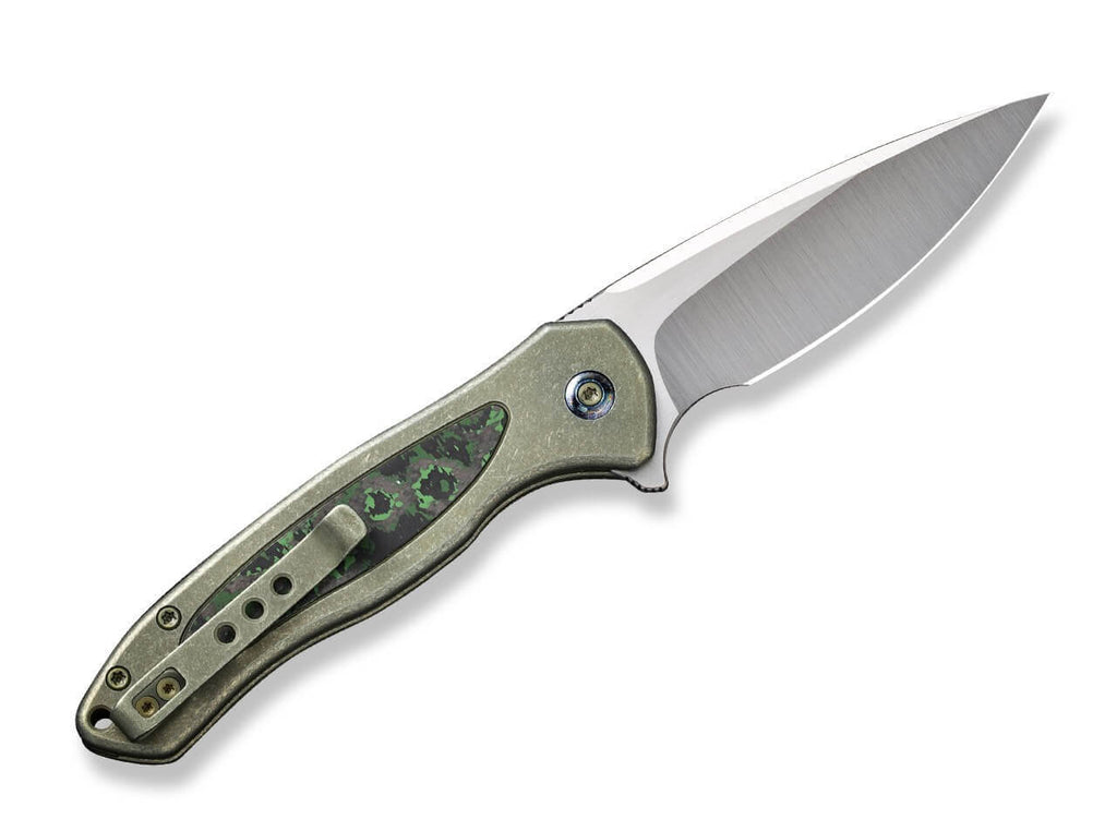 WE Knife Button Lock Kitefin Ltd Titanium CF Jungle Wear