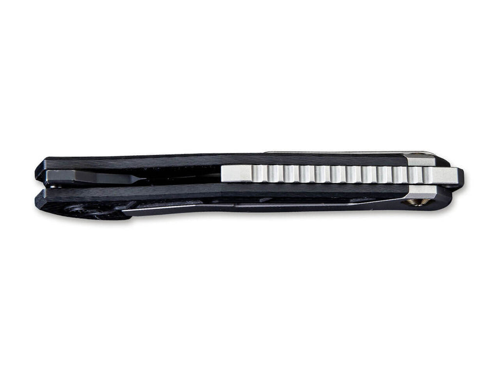 Das WE Knife Sugga 915B ist ein solides von Mikkel Willumsen entworfenes Taschenmesser, dessen Designstil deutlich erkennbar ist. Das große Format, die dramatische Klingenform und der kantige Griff sind typische Elemente von Willumsen. Die kantige Form verleiht dem Messer einen Industrie-Look, welcher durch die ausgefrästen Teile im Griff, die an eine Stahlkonstruktion erinnern, verstärkt wird.Trotz der kantigen Formen liegt das Messer sehr komfortabel in der Hand. Die Griffkombination aus Kohlefaser und Titan ist ein echter Hingucker. Da ein großer Teil der Konstruktion aus Kohlefaser besteht, ist das Sugga für seine Größe überraschend leicht. Die black-stonewashed Klinge ist aus S35VN-Stahl gefertigt, eine sehr starke und leicht zupflegende Stahlsorte. Der Flipper ermöglicht ein schnelles und komfortables Öffnen und dank des soliden Framelocks wird die Klinge sicher verriegelt. Ein schön gefräster Titan-Taschenclip (Tip/up) mit Keramikkugel rundet das Bild ab. Warnhinweise und Sicherheitsinformationen:Schnittverletzungen: Die häufigste Gefahr bei der Verwendung von Messern ist das Risiko von Schnittverletzungen. Scharfe Klingen können schnell durch Haut und Gewebe dringen.Abrutschen des Messers: Ein unsachgemäßes oder zu starkes Drücken kann dazu führen, dass das Messer abrutscht und unkontrollierte Bewegungen entstehen, die Verletzungen verursachen können.Verletzungen durch Stürze: Messer sollten niemals ungesichert oder in der Nähe von Tischkanten abgelegt werden, um zu verhindern, dass sie herunterfallen und jemanden verletzen.Stumpfe Messer: Stumpfe Messer stellen ein größeres Verletzungsrisiko dar, da sie mehr Kraft erfordern und leichter abrutschen können. Messer sollten daher regelmäßig sachgemäß nachgeschärft werden.Nicht bestimmungsgemäße Nutzung: Das Verwenden eines Messers für Aufgaben, für die es nicht vorgesehen ist (z.B. als Hebelwerkzeug), kann nicht nur die Klinge beschädigen, sondern auch zu Unfällen führen.