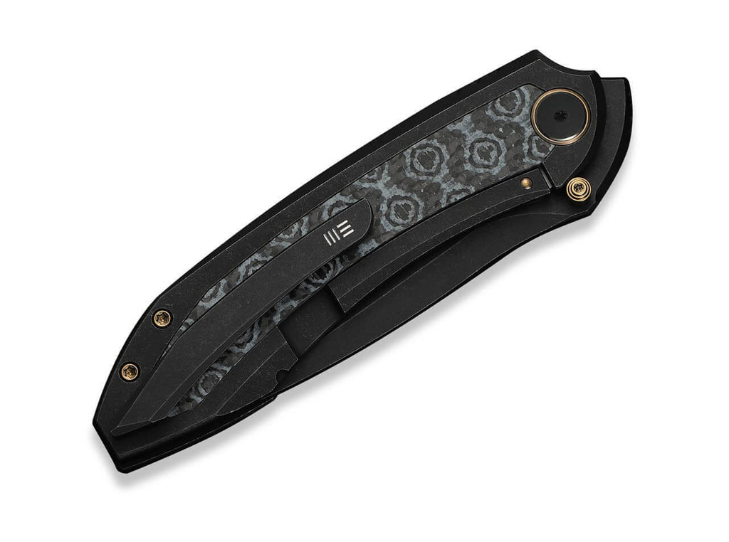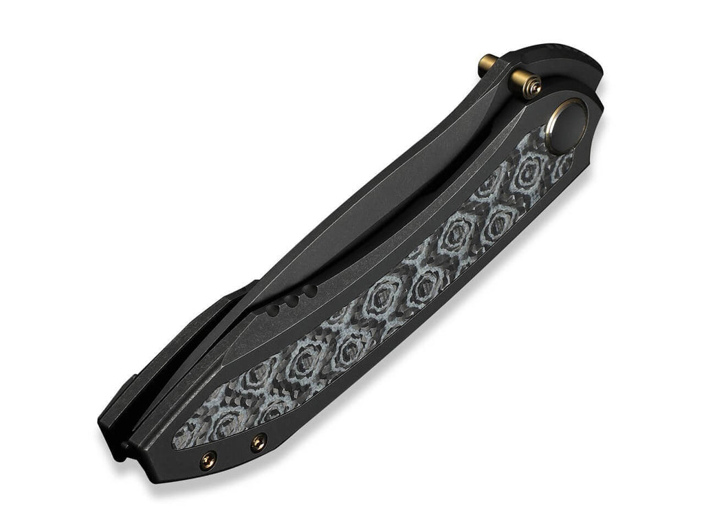 WE Knife Winsome M390 Black Ti Layerd G10 Rose Pattern CF Black Stonewashed