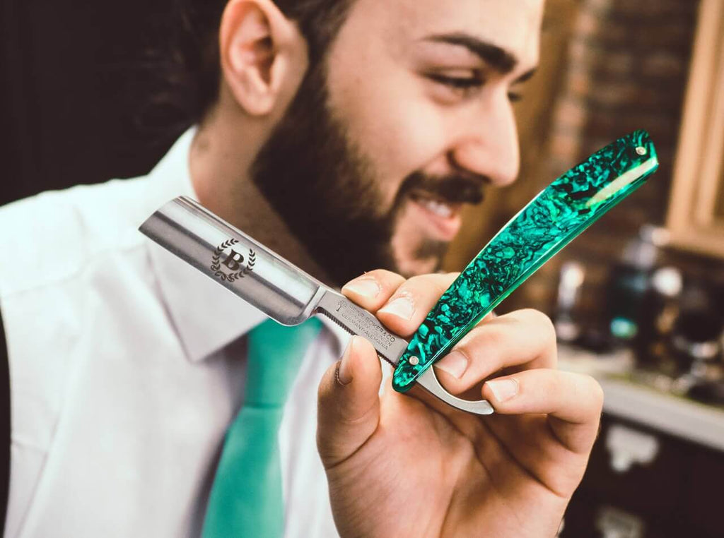 Das Böker Abalone vereint eine außergewöhnliche Optik mit einer herausragenden Performance. Die im Gesenk geschmiedete Klinge dieses Ausnahmemessers wird aus Carbonstahl gefertigt und auf 59-61 HRC gehärtet. Aufgrund seiner überlegenen Eigenschaften und seiner exzellenten Schnitthaltigkeit eignet sich dieser Stahl hervorragend für hochwertige Rasiermesser. Neben klassischen Materialien, die seit vielen Jahrzehnten die beliebten Modelle des Böker Rasiermessersortiments prägen, sind wir kontinuierlich auf der Suche nach modernen und innovativen Naturmaterialkombinationen, die aufgrund ihrer besonderen Anmutung oder Haptik für Begeisterung sorgen. Weißes Gold, Seeschnecken, See- oder Meerohren sind nur einige Synonyme für Abalone.Die Weichtiere, die sich vor den Küsten in Australien, Neuseeland, Japan, China, Mexiko und in Südafrika einige Meter unter der Wasseroberfläche festsaugen, gelten als Delikatesse und haben aufgrund ihrer Begehrlichkeit in der Vergangenheit ganze Bandenkriege ausgelöst. Heute wird das kostbare Naturprodukt in Aquakulturfarmen gezüchtet. Die wunderschönen und fast schon künstlich schimmernden Schalen dieser beliebten Weichtiere werden seit jeher als Dekorationsobjekt, als Gebrauchsgegenstand oder als Ausgangsmaterial für Schmuck, Intarsien oder Perlmutt-Spangen verwendet. Durch die Verwendung modernster Fertigungsverfahren wird eine hauchdünne Schicht bunter Abalone auf ein Trägermaterial aufgebracht und mit transparentem Acryl umgossen. Das so gewonnene, sehr widerstandsfähige Material eignet sich hervorragend für die Fertigung der Rasiermesserhefte und begeistert durch ein außergewöhnliches Farbenspiel und eine dreidimensionale Optik.Die 6/8 Zoll breite Klinge dieses außergewöhnlichen Rasiermessers wird extra hohl auf Klang ausgeschliffen und mit einer beidseitigen Serrierung ausgestattet. Der französische Kopf der Rasiermesserklinge aus dem Carbonstahl fügt sich harmonisch in das außergewöhnliche Heft aus Abalone ein. Die schlichte Lasergravur geht zurück auf eine historische Klingenätzung, die bereits Anfang des 20. Jahrhunderts für besonders ausgefallene Rasiermesser von Böker verwendet wurde. Auslieferung in einem hochwertigen Rahmenetui und mit Echtheitszertifikat. Warnhinweise und Sicherheitsinformationen:Schnittverletzungen: Die häufigste Gefahr bei der Verwendung von Messern ist das Risiko von Schnittverletzungen. Scharfe Klingen können schnell durch Haut und Gewebe dringen.Abrutschen des Messers: Ein unsachgemäßes oder zu starkes Drücken kann dazu führen, dass das Messer abrutscht und unkontrollierte Bewegungen entstehen, die Verletzungen verursachen können.Verletzungen durch Stürze: Messer sollten niemals ungesichert oder in der Nähe von Tischkanten abgelegt werden, um zu verhindern, dass sie herunterfallen und jemanden verletzen.Stumpfe Messer: Stumpfe Messer stellen ein größeres Verletzungsrisiko dar, da sie mehr Kraft erfordern und leichter abrutschen können. Messer sollten daher regelmäßig sachgemäß nachgeschärft werden.Nicht bestimmungsgemäße Nutzung: Das Verwenden eines Messers für Aufgaben, für die es nicht vorgesehen ist (z.B. als Hebelwerkzeug), kann nicht nur die Klinge beschädigen, sondern auch zu Unfällen führen.