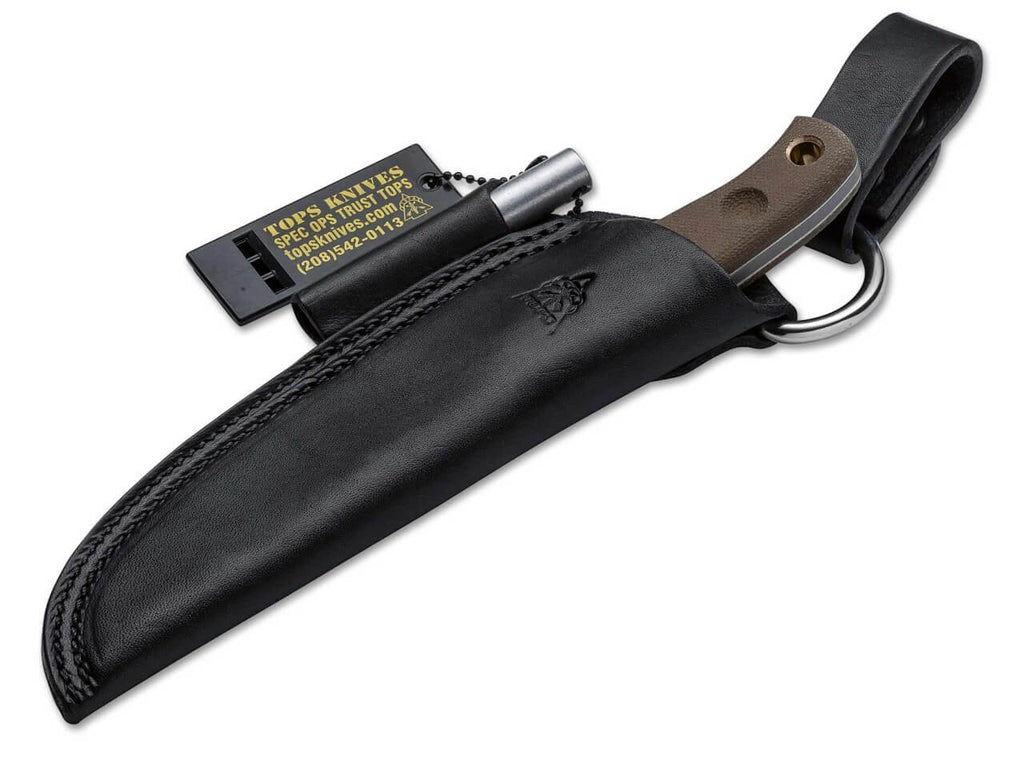 One Life - One Knife, das ist das Credo der bekannten Messerschmiede TOPS aus Idaho im Herzen der Rocky Mountains. Das Unternehmen verfügt über ein extrem hohes Maß an behördlichem Input, da viele TOPS Mitarbeiter auf eine lange polizeiliche oder militärische Karriere zurückblicken können und bestens mit den Behörden vernetzt sind. Jedes Modell wird mindestens sechs Monate lang im Feldeinsatz getestet, bevor es in Serie gefertigt wird.Die äußerst stabilen Messerklingen werden vorwiegend aus dem vielfach bewährten 1095 Kohlenstoffstahl gefertigt und mit einer speziellen, abriebfesten Pulverbeschichtung (eigens für TOPS entwickelt) vor Korrosion geschützt. Dieses sogenannte Black Traction Coating hat den besonders anspruchsvollen Salznebeltest des US Militärs sieben Tage lang unbeschadet überstanden. Aufgrund der Robustheit und Zuverlässigkeit werden TOPS Messer von den Alliierten Streitkräften in den aktuellen Krisengebieten als wichtiger Ausrüstungsbestandteil besonders geschätzt. Alle Modelle von TOPS werden in den USA gefertigt.