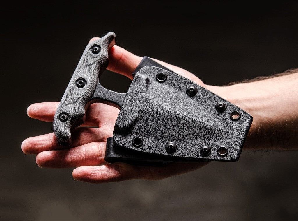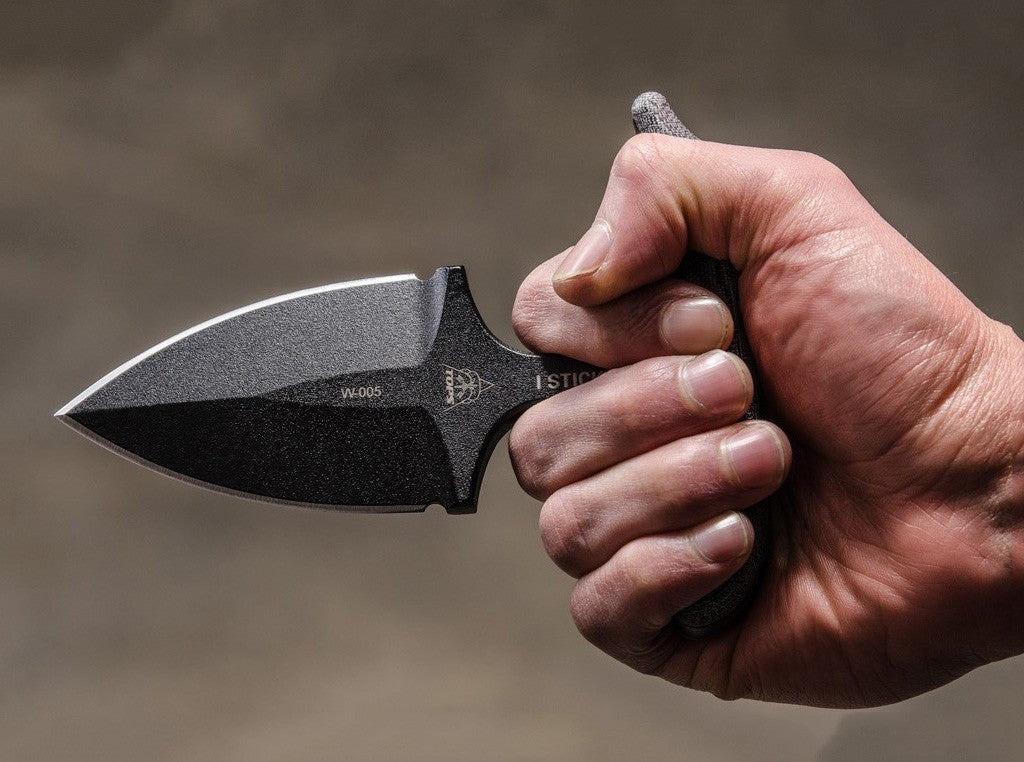 Achtung!Dieser Artikel ist ausschließlich für den Export in zugelassene Märkte bestimmt. Es handelt sich um einen verbotenen Gegenstand gemäß deutschem Waffengesetz. Der Vertrieb in und die Einfuhr nach Deutschland sowie jeglicher Umgang mit diesem Produkt in Deutschland ist verboten. Die Abgabe erfolgt nur an berechtigte Personen, jede Bestellung wird manuell geprüft! Bestellungen aus nicht zugelassenen Märkten werden ohne Rückmeldung gelöscht. Aufgrund der besonderen Rechtslage müssen wir diesen Artikel getrennt von anderen Artikeln versenden, wodurch höhere Portokosten entstehen können.Der TOPS I Stick ist ein extrem stabil gebauter Stoßdolch aus 1075 Kohlenstoffstahl, mit Traction Coating. Die Klingenstärke von über 9 mm ist in diesem Segment beispiellos. Beschalung aus Canvas-Micarta. Lieferung mit Kydexscheide mit variablen Clips. Warnhinweise und Sicherheitsinformationen:Schnittverletzungen: Die häufigste Gefahr bei der Verwendung von Messern ist das Risiko von Schnittverletzungen. Scharfe Klingen können schnell durch Haut und Gewebe dringen.Abrutschen des Messers: Ein unsachgemäßes oder zu starkes Drücken kann dazu führen, dass das Messer abrutscht und unkontrollierte Bewegungen entstehen, die Verletzungen verursachen können.Verletzungen durch Stürze: Messer sollten niemals ungesichert oder in der Nähe von Tischkanten abgelegt werden, um zu verhindern, dass sie herunterfallen und jemanden verletzen.Stumpfe Messer: Stumpfe Messer stellen ein größeres Verletzungsrisiko dar, da sie mehr Kraft erfordern und leichter abrutschen können. Messer sollten daher regelmäßig sachgemäß nachgeschärft werden.Nicht bestimmungsgemäße Nutzung: Das Verwenden eines Messers für Aufgaben, für die es nicht vorgesehen ist (z.B. als Hebelwerkzeug), kann nicht nur die Klinge beschädigen, sondern auch zu Unfällen führen.