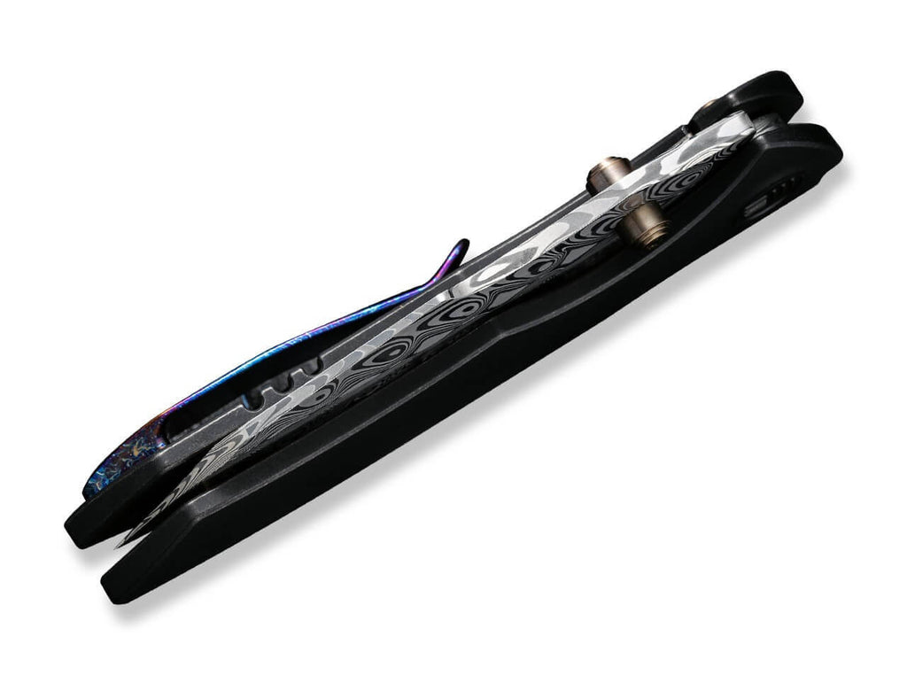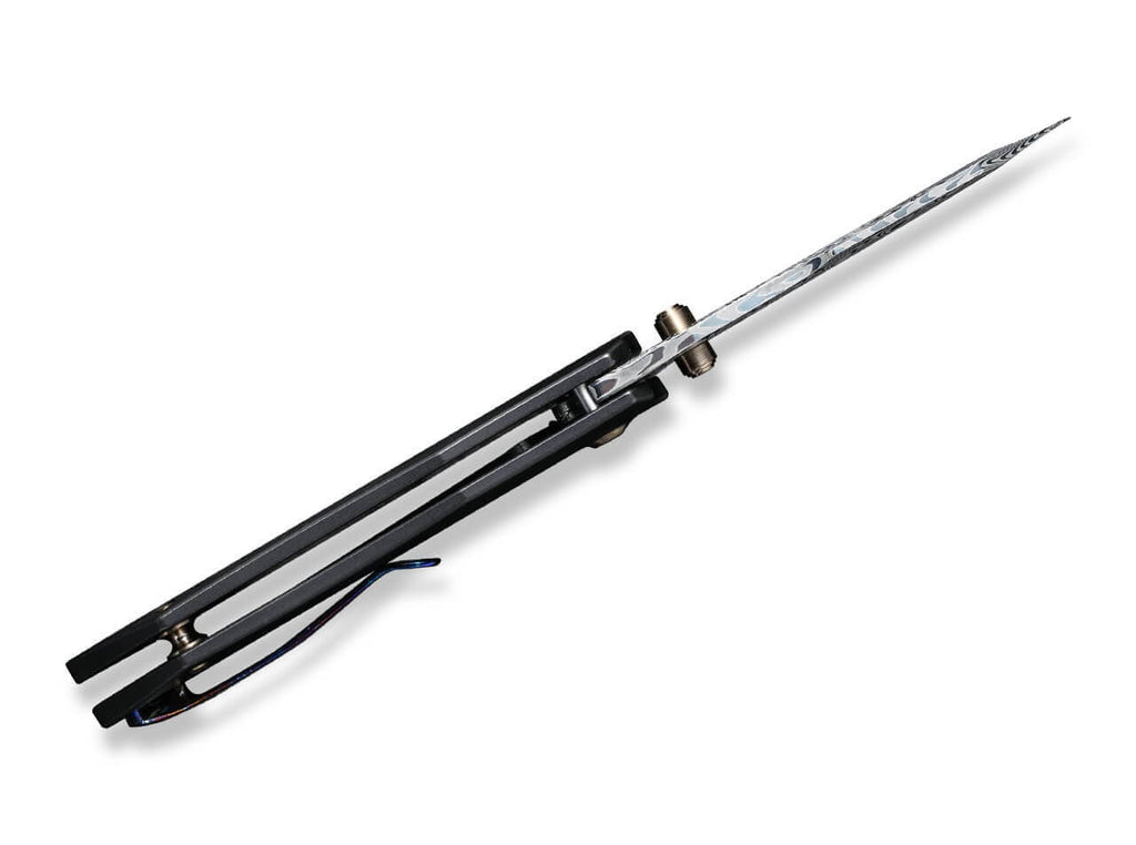 WE Knife High-Fin Titanium Black Hakkapella Damascus