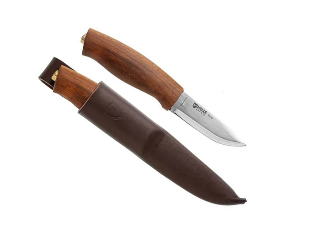 Helle Skog ist eine moderne Interpretation eines klassischen Schnitzmessers und ein Einsteigermesser, mit dem Sie die Entspannung genießen können, die das Schaffen aus einem Stück Holz mit sich bringt. Holzschnitzen wird in unserem zunehmend hektischen Alltag immer beliebter. Das Helle Skog (norwegisch für „Wald“) ist das perfekte Messer für den Einstieg in die Holzverarbeitung. Ein Ort der Ruhe, an dem die Zeit langsamer vergeht. Wie der Name schon sagt, ist es auch ein Messer, das für den Einsatz im Wald als Begleiter für viele Aufgaben konzipiert wurde. Das Skog ist etwas robuster als ein spezielles Schnitzmesser und bietet daher ein breiteres Anwendungsspektrum. Sein handgeschliffener und konturierter Griff liegt auch bei längerem Gebrauch bequem in der Hand und verhindert Druckstellen. Die glatten Konturen sorgen für einen guten Halt und führen die Hand in eine sichere Position, selbst wenn man das Messer nahe an der Klinge hält. Das Messer hat eine messerscharfe, dreifach laminierte Klinge aus rostfreiem Stahl und wird mit einer Lederscheide geliefert. Warnhinweise und Sicherheitsinformationen:Schnittverletzungen: Die häufigste Gefahr bei der Verwendung von Messern ist das Risiko von Schnittverletzungen. Scharfe Klingen können schnell durch Haut und Gewebe dringen.Abrutschen des Messers: Ein unsachgemäßes oder zu starkes Drücken kann dazu führen, dass das Messer abrutscht und unkontrollierte Bewegungen entstehen, die Verletzungen verursachen können.Verletzungen durch Stürze: Messer sollten niemals ungesichert oder in der Nähe von Tischkanten abgelegt werden, um zu verhindern, dass sie herunterfallen und jemanden verletzen.Stumpfe Messer: Stumpfe Messer stellen ein größeres Verletzungsrisiko dar, da sie mehr Kraft erfordern und leichter abrutschen können. Messer sollten daher regelmäßig sachgemäß nachgeschärft werden.Nicht bestimmungsgemäße Nutzung: Das Verwenden eines Messers für Aufgaben, für die es nicht vorgesehen ist (z.B. als Hebelwerkzeug), kann nicht nur die Klinge beschädigen, sondern auch zu Unfällen führen.