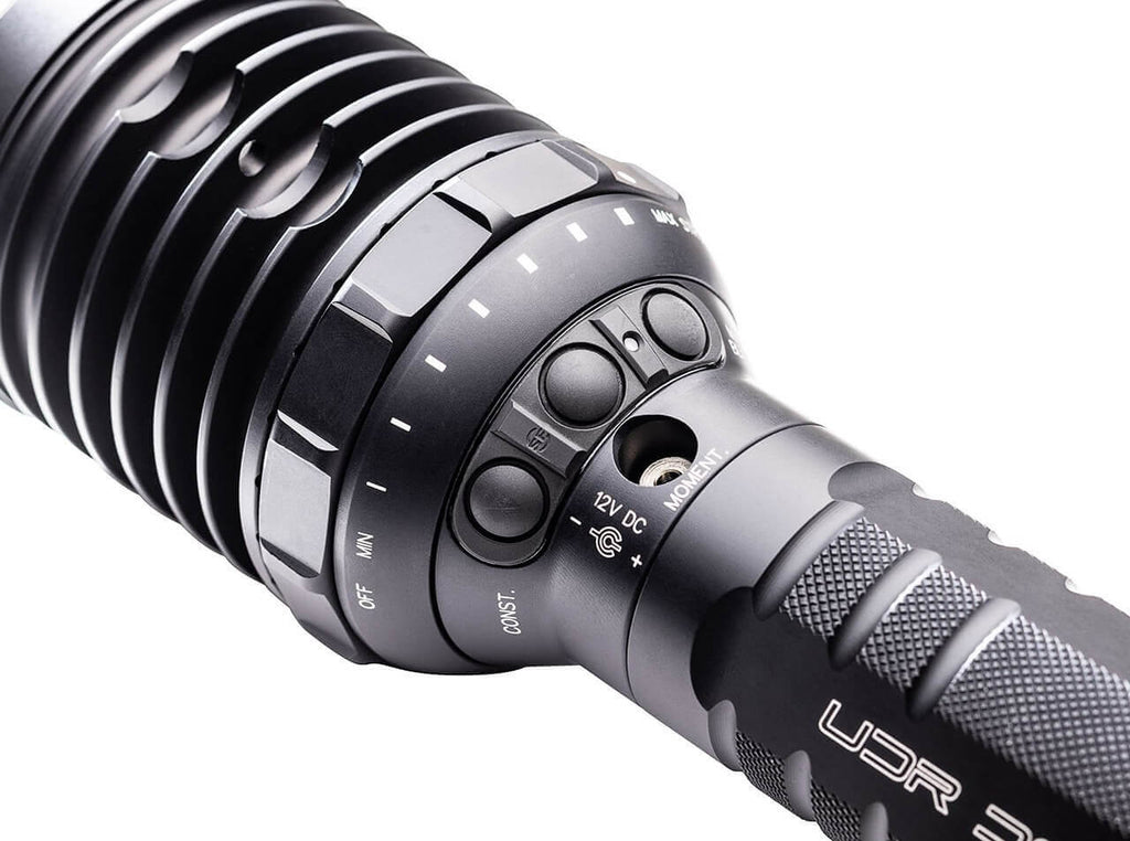 The peak of light! Die SureFire UDR Dominator ist nichts weniger als ein tragbares Flutlicht. Die neueste Version erzeugt eine maximale Lichtleistung von 4400 Lumen und bringt erstaunliche 350000 Candela auf eine Entfernung von mehr als 1100 Metern, sofern die Taschenlampe mit dem mitgelieferten Lithium-Ionen-Akku betrieben wird. Neun wählbare Leistungsstufen, von der maximalen Leistung bis hinunter zu 40 Lumen, decken von Spotlight bis Flutlicht alles ab. Der separate Heckschalter ermöglicht den Dauer-, Momentan- oder MaxBlast-Modus, der bei Bedarf sofort die volle Leistung liefert. Zusätzlich gibt es einen taktischen Strobe-Modus. Die Dominator UDR lässt sich bequem per Kabel über eine normale Steckdose aufladen, während die dreifarbige LED-Anzeige stets der Ladestand anzeigt. Zum Lieferumfang gehören weiterhin ein Ladekabel sowie eine Nylonschlaufe, die das Tragen über der Schulter erleichtert. Das robuste Aluminiumgehäuse ist nach IPX7 Standard schmutz- und wasserfest. Der Dominator ist ideal für alle Einsätze, bei denen ein ultraheller Suchscheinwerfer für große Entfernungen unerlässlich ist. Warnhinweise und Sicherheitsinformationen:Schnittverletzungen: Die häufigste Gefahr bei der Verwendung von Messern ist das Risiko von Schnittverletzungen. Scharfe Klingen können schnell durch Haut und Gewebe dringen.Abrutschen des Messers: Ein unsachgemäßes oder zu starkes Drücken kann dazu führen, dass das Messer abrutscht und unkontrollierte Bewegungen entstehen, die Verletzungen verursachen können.Verletzungen durch Stürze: Messer sollten niemals ungesichert oder in der Nähe von Tischkanten abgelegt werden, um zu verhindern, dass sie herunterfallen und jemanden verletzen.Stumpfe Messer: Stumpfe Messer stellen ein größeres Verletzungsrisiko dar, da sie mehr Kraft erfordern und leichter abrutschen können. Messer sollten daher regelmäßig sachgemäß nachgeschärft werden.Nicht bestimmungsgemäße Nutzung: Das Verwenden eines Messers für Aufgaben, für die es nicht vorgesehen ist (z.B. als Hebelwerkzeug), kann nicht nur die Klinge beschädigen, sondern auch zu Unfällen führen.