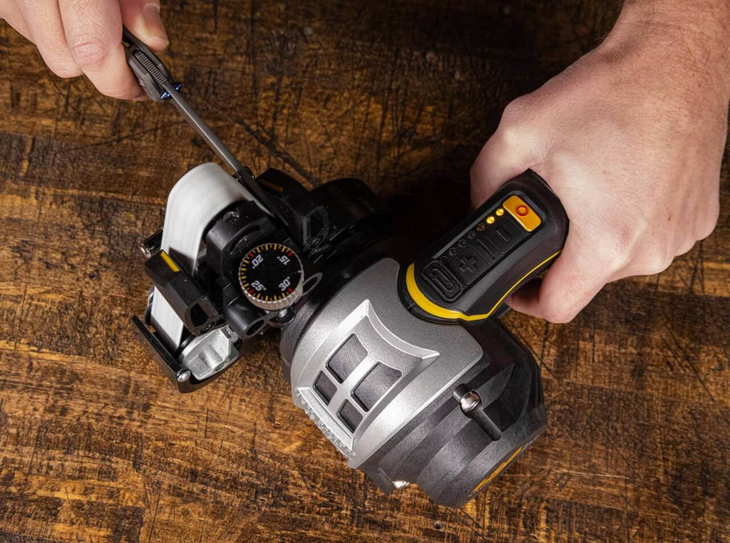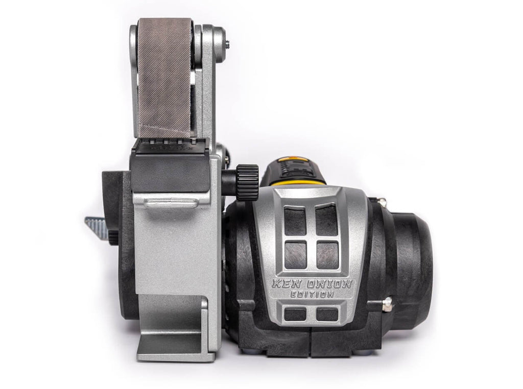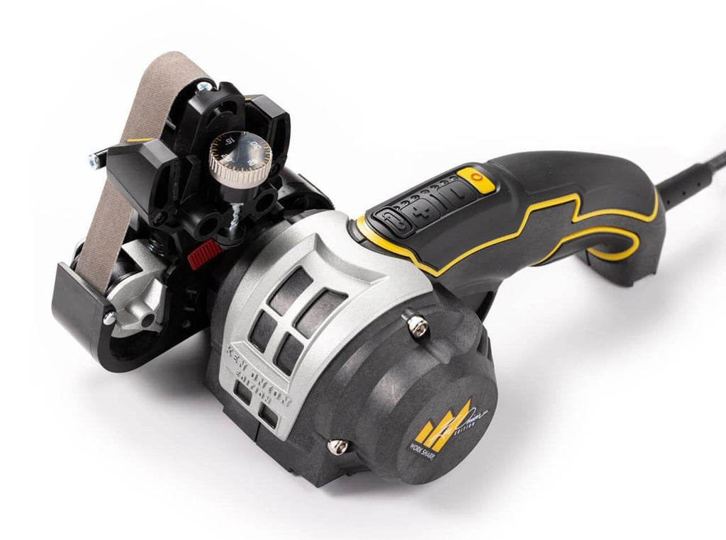 The peak of sharpness! Zusammen mit Messermacher-Legende Ken Onion hat Work Sharp den Ken Onion Edition Knife & Tool Sharpener Mk.2 als Vermächtnis und gleichsam Impulsgeber des weltweit erfolgreichen Vorgängers weiterentwickelt. Das Verdikt: optimale Schärfe bei minimalem Aufwand! Der elektronische Messerschärfer sorgt dank seiner intuitiven Bedienung für die perfekte Schärfe. Durch integrierte, flexible Schleifbänder, einer optimierten Präzisions-Schleifführung sowie einer elektronischen Drehzahlregelung mit 7 Stufen wird ein schnelles und einfaches Schärfen mit gleichbleibenden Ergebnissen zum Kinderspiel. Die verbesserte Winkelführung des Messerschleifers bietet für jeden beliebigen Schneidwinkel zwischen 15° und 30° eine Feineinstellung in 0,5° Schritten, während die Fütterung aus weichem Leder ein Verkratzen der Klinge effektiv verhindert. Wenn es auf präzise Schärfergebnisse ankommt, liefert die elektronische Geschwindigkeitsregelung mit LED-Anzeige ein sattes Drehmoment bei niedriger Drehzahl, während die Hochgeschwindigkeitseinstellung die nötige Leistung für schwere Schärf- und Schleifarbeiten an einer Vielzahl von Messern und Werkzeugen bietet. Mit der flexiblen Schärfbandtechnologie wandert nun Profi Know-How von Messermachern und -herstellern an die heimische Werkbank. Die mitgelieferten 3/4" x 12" Norton Schleifbänder unterschiedlicher Körnung (je 1x P120 Extra Coarse, X65 Coarse, X22 Medium, X4 Fine und 6000 Extra-Fine) bieten von der Reparatur beschädigter Klingen bis hin zur Erstellung einer scharfen, hochpolierten Schneide ein breites Einsatzspekturm und stehen für Langlebigkeit sowie Präzision. Das elektronische Schärfgerät ist ideal zum Schärfen von Taschenmessern, feststehenden Messern, Kochmessern, Scheren, Äxten, Werkzeugen oder Klingen mit Wellenschliff. Als weltweit führender Hersteller von Messerschärfern steht Work Sharp für Qualität, Innovation und intuitive Bedienkonzepte. Entwickelt, kalibriert und qualitätsgeprüft in Ashland, Oregon in den USA. Betriebsbereit, 220V Netzanschluss. Warnhinweise und Sicherheitsinformationen:Schnittverletzungen: Die häufigste Gefahr bei der Verwendung von Messern ist das Risiko von Schnittverletzungen. Scharfe Klingen können schnell durch Haut und Gewebe dringen.Abrutschen des Messers: Ein unsachgemäßes oder zu starkes Drücken kann dazu führen, dass das Messer abrutscht und unkontrollierte Bewegungen entstehen, die Verletzungen verursachen können.Verletzungen durch Stürze: Messer sollten niemals ungesichert oder in der Nähe von Tischkanten abgelegt werden, um zu verhindern, dass sie herunterfallen und jemanden verletzen.Stumpfe Messer: Stumpfe Messer stellen ein größeres Verletzungsrisiko dar, da sie mehr Kraft erfordern und leichter abrutschen können. Messer sollten daher regelmäßig sachgemäß nachgeschärft werden.Nicht bestimmungsgemäße Nutzung: Das Verwenden eines Messers für Aufgaben, für die es nicht vorgesehen ist (z.B. als Hebelwerkzeug), kann nicht nur die Klinge beschädigen, sondern auch zu Unfällen führen.